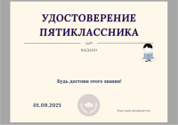 Удостоверение пятиклассника