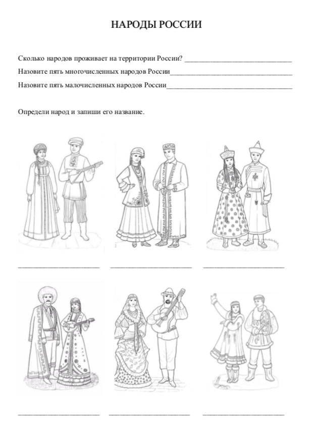Рабочий лист содержит задания на знание общей информации о народах России, и их культурных особенностях