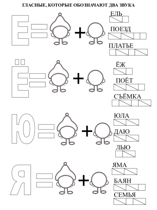 Карточка "ГЛАСНЫЕ, КОТОРЫЕ ОБОЗНАЧАЮТ ДВА ЗВУКА"