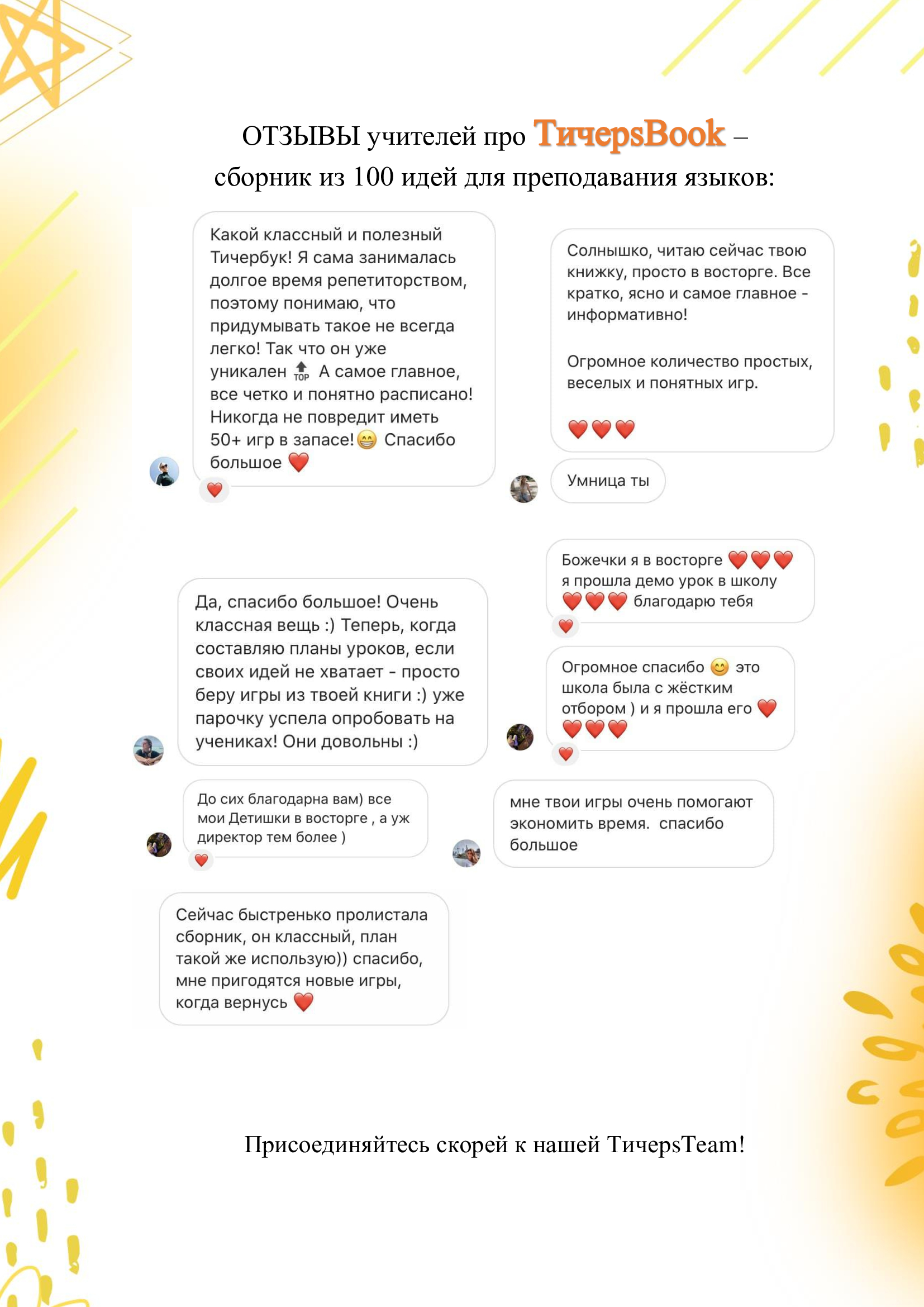 На 97 страницах ТичерsBook вы найдете больше 100 идей для ваших уроков: