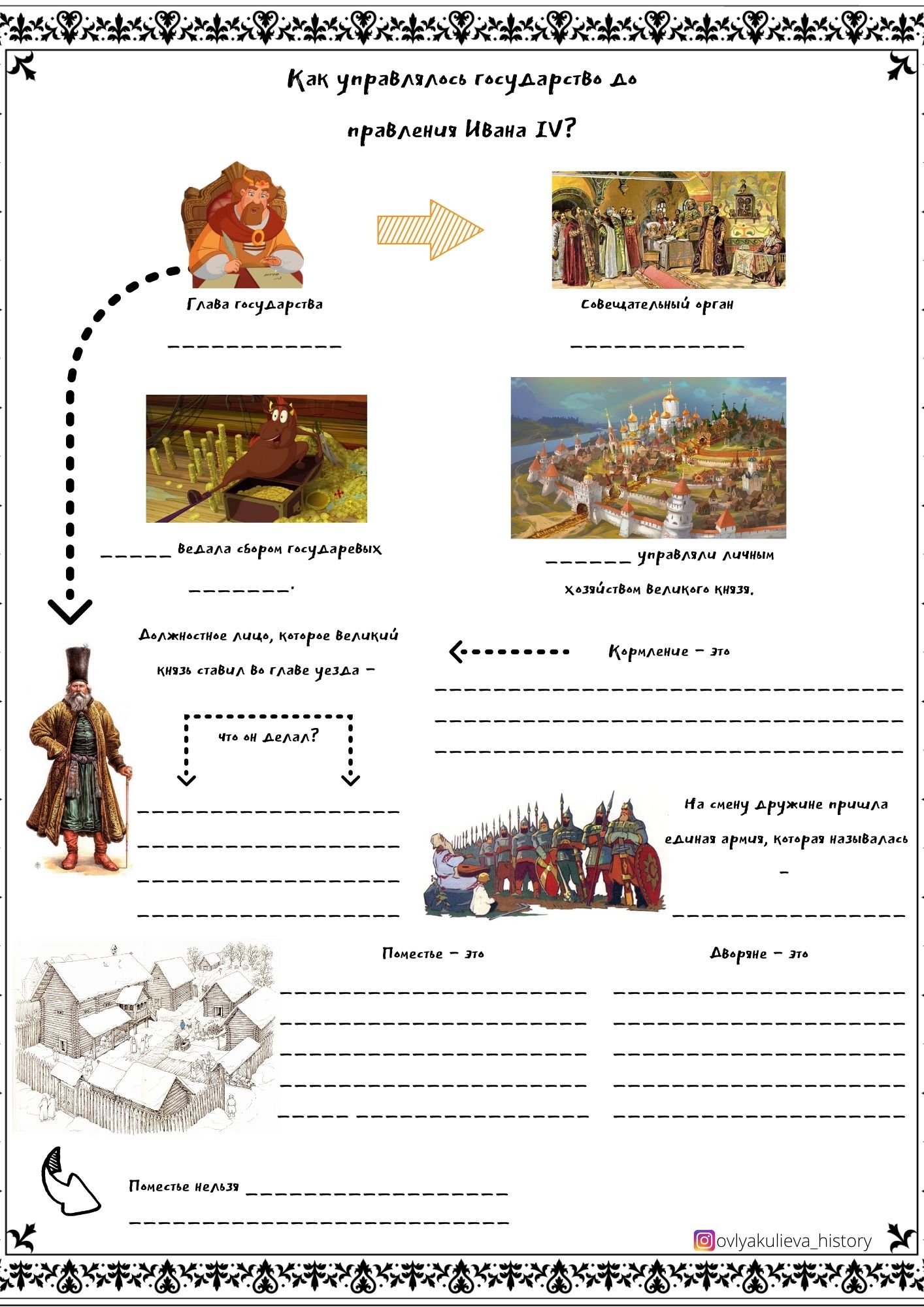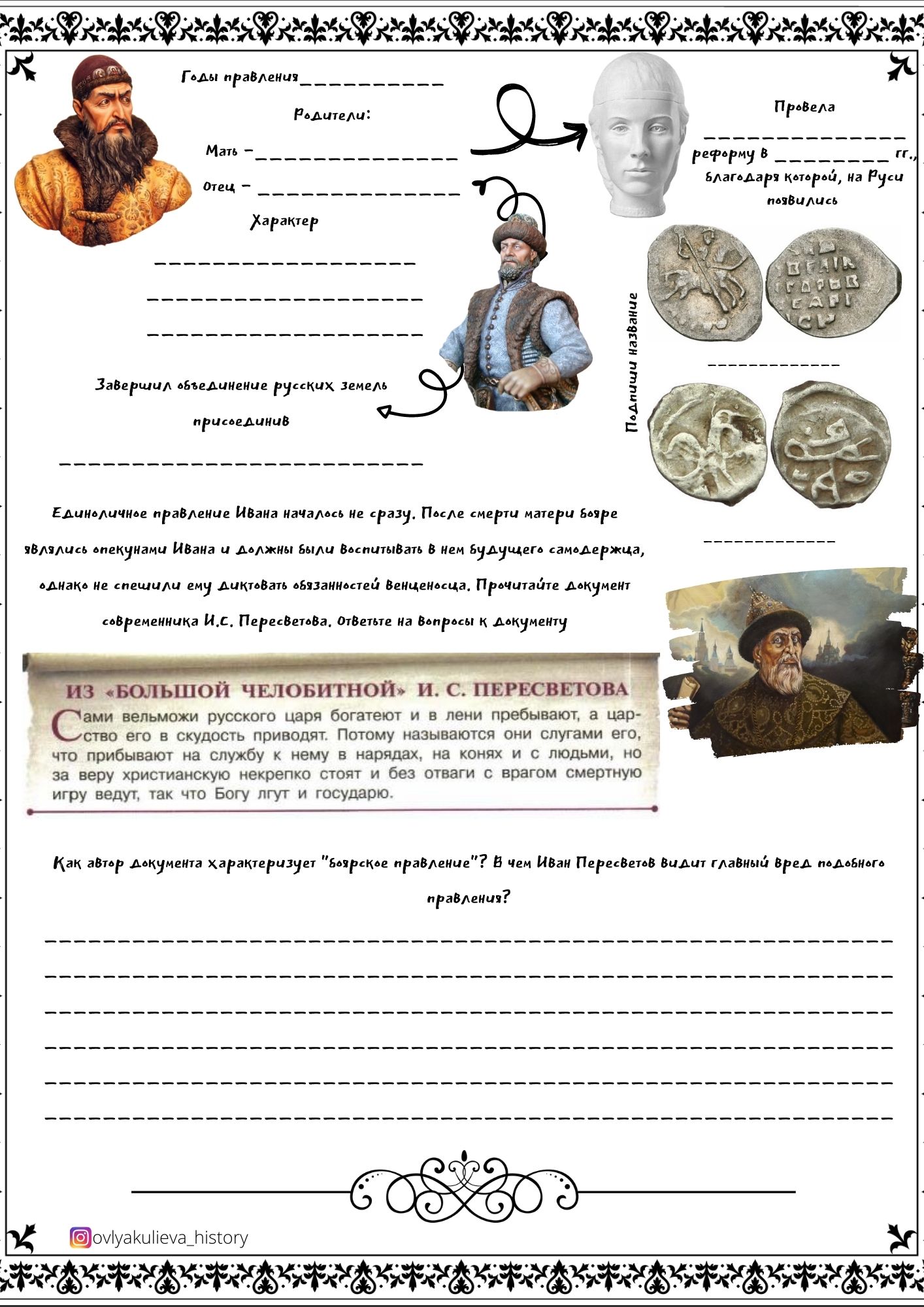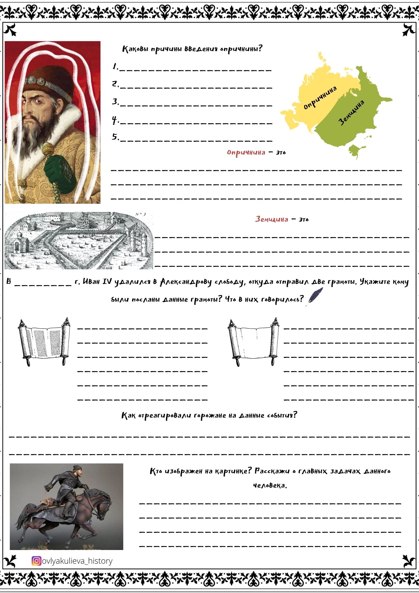Рабочая тетрадь для 7/11 класса по теме "Эпоха Ивана Грозного". Тетрадь адаптирована под учебник А.В. Торкунова.