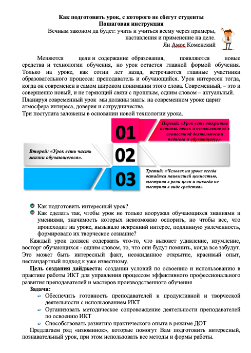 Цель создания дайджеста: создании условий по освоению и использованию в практике работы ИКТ для управления процессом эффективного профессионального развития преподавателей и мастеров производственного обучения