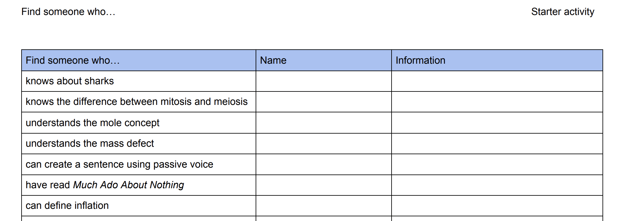 Find someone who - шаблон