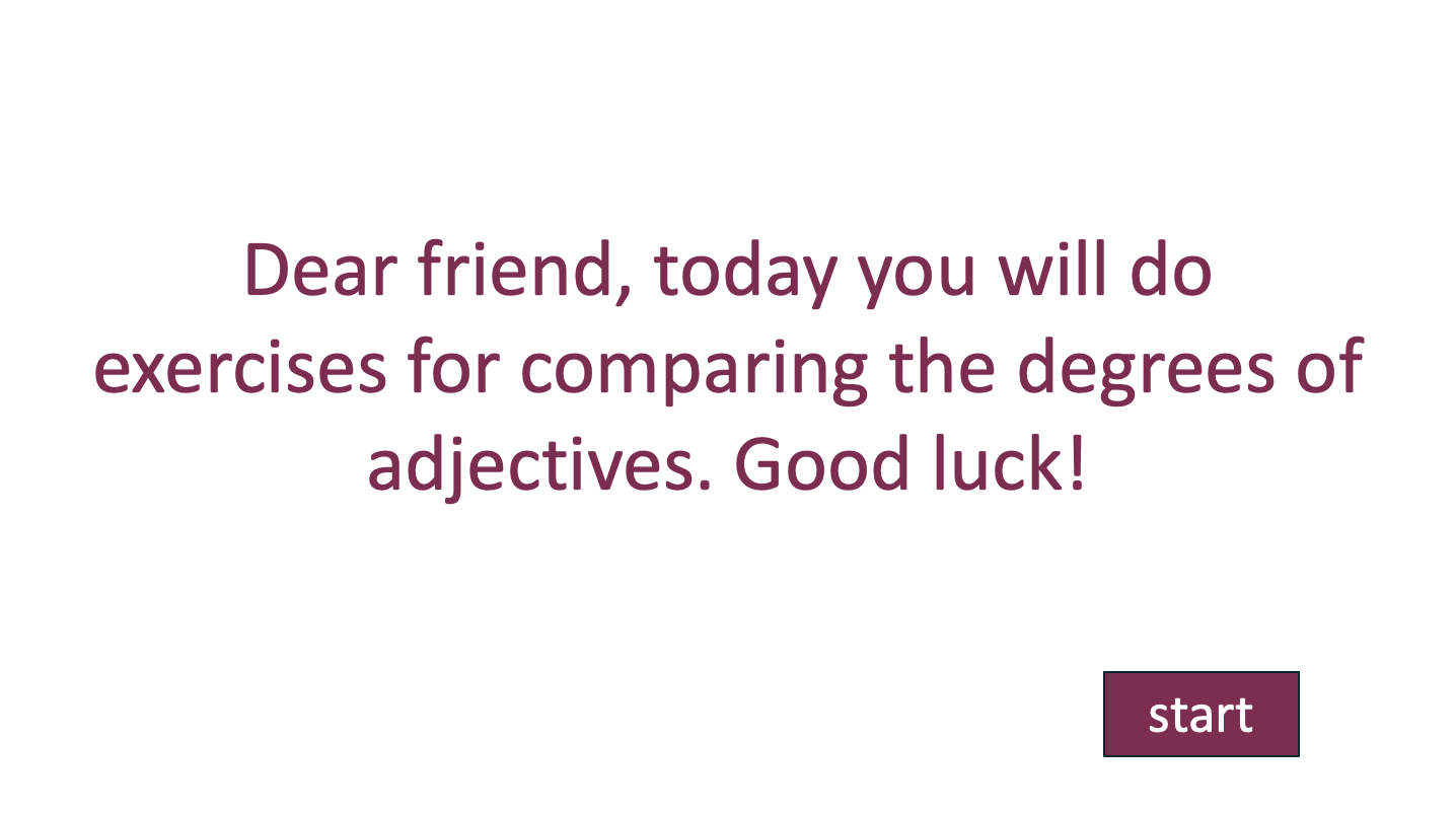 This resource was developed on the subject "English" for the 6th grade on a cross-cutting topic «Degrees of adjectives». We realize the learning objectives: