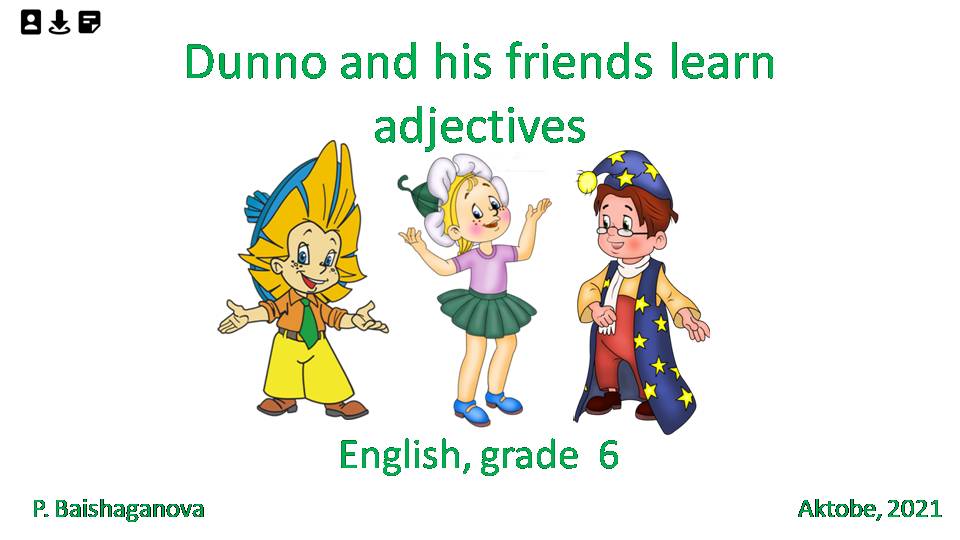 Байшағанова П.Б. Dunno and his friends learn adjectives. (англ.яз., 6 кл.)
