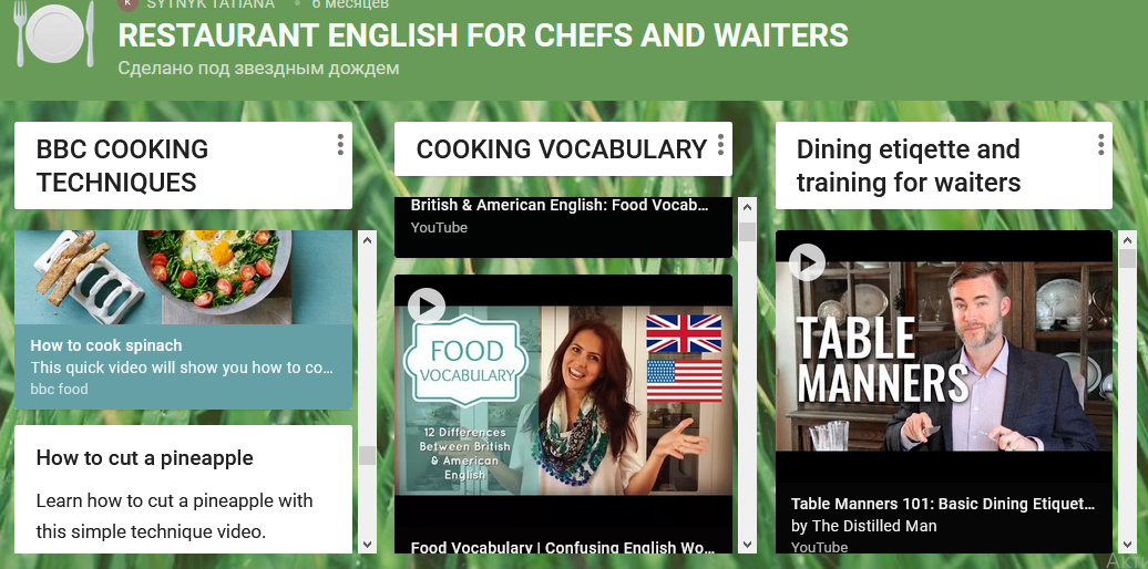 Тематическая подборка COOKING. Интеравктивная доска PADLET