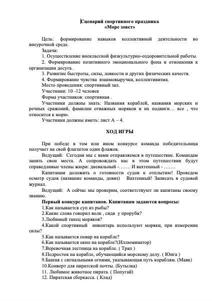 Сценарий спортивного праздника«Море зовет»