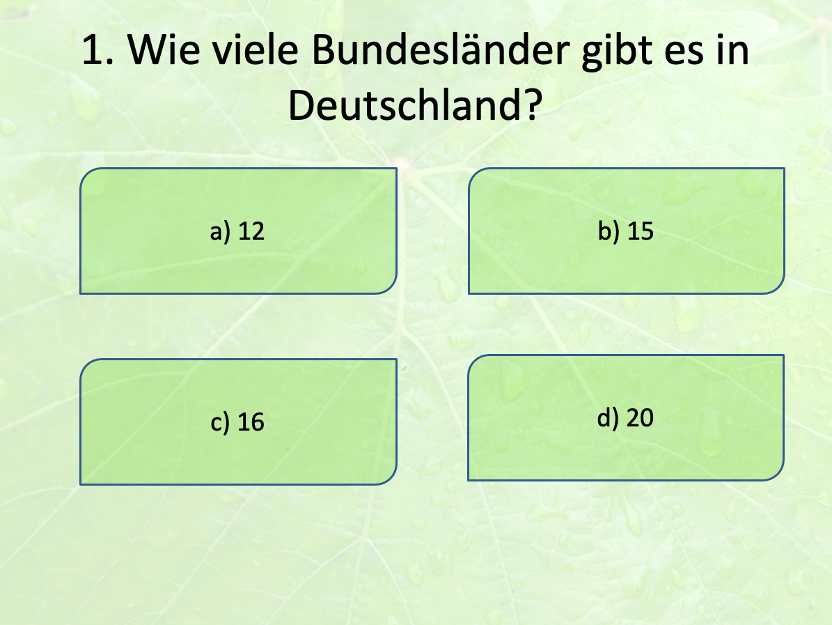 Немецкий язык для начинающих. Презентация-викторина с 15 вопросами со списком используемой литературы