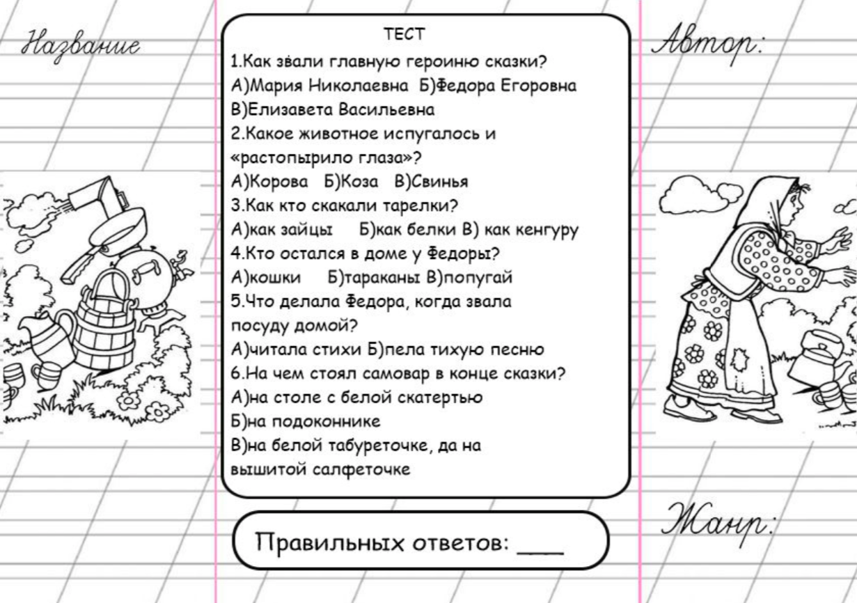 Рабочие листы по рассказзам «Путаница», «Федорино горе», «Мой щенок», «Кот и лодыри»
