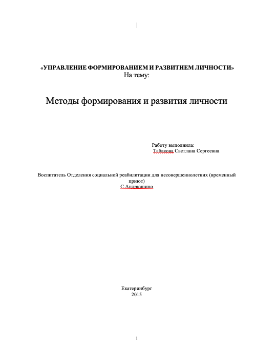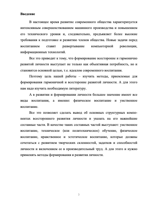 Поэтому цель нашей работы – изучить методы, приемлемые для формирования гармоничной и всесторонне развитой личности. А для этого нам надо изучить необходимую литературу.