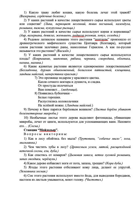 Классам дается задание – подготовиться к викторинам. Название викторины – название “станции”.