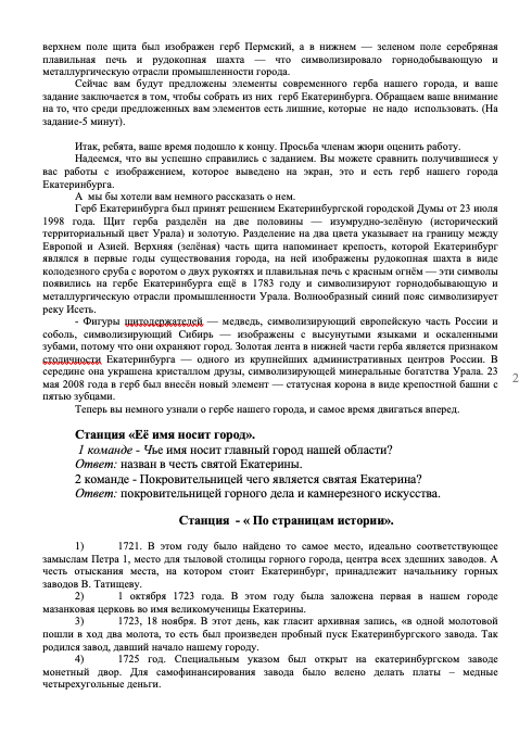 Предварительная подготовка: изучение литературы и других источников по истории Екатеринбурга; подготовка творческих работ (макеты, рисунки, творческие работы, стихи); формирование команд участников игры.