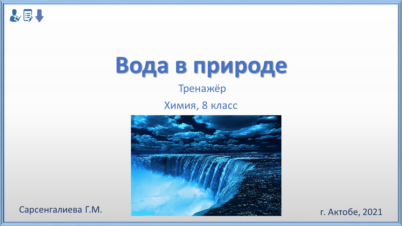 Данный ресурс разработан по предмету химия для 8 класса общеобразовательной школы по разделу «Вода».