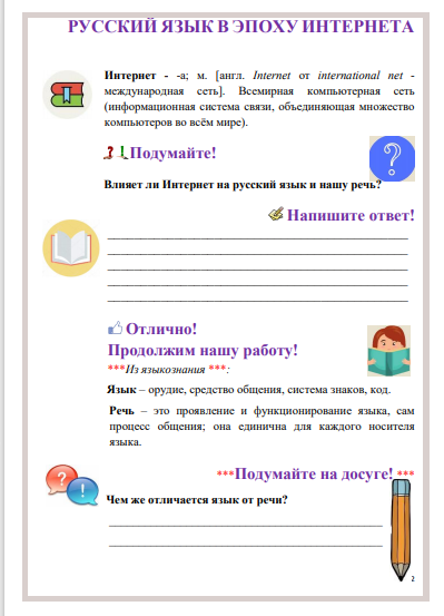 Рабочая тетрадь к уроку: "Русский язык в эпоху Интернета"