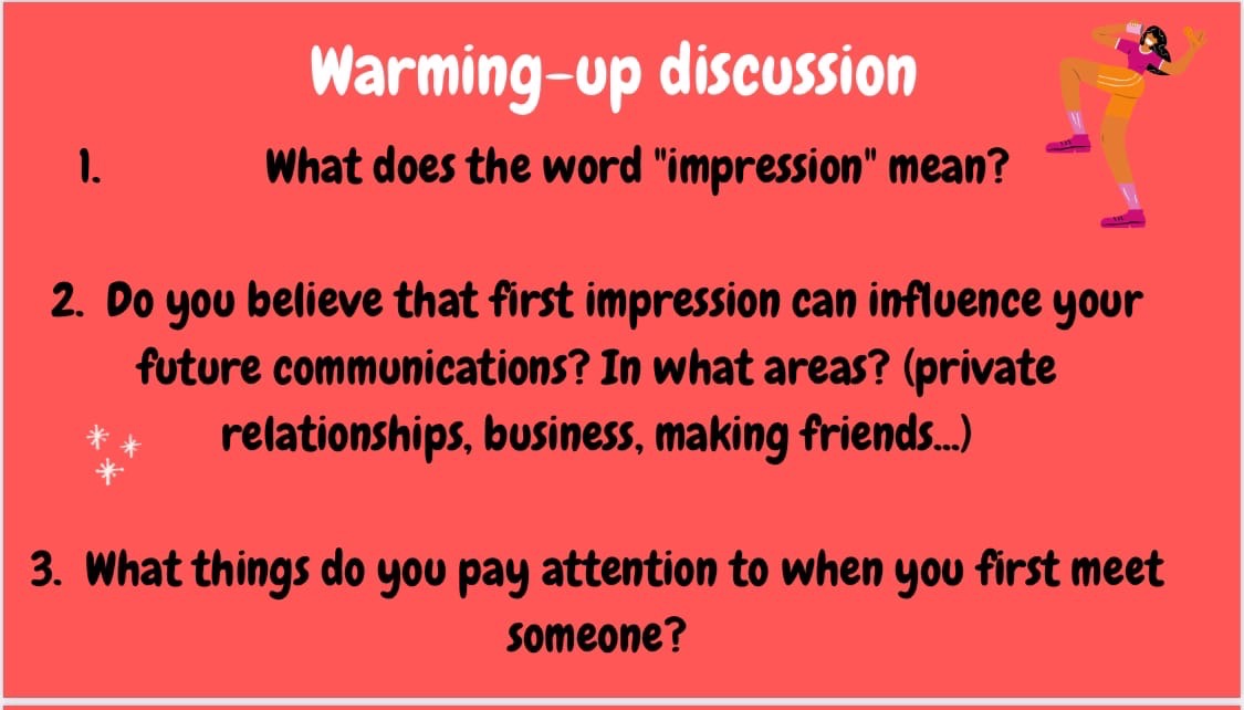 Тема: "ART OF MAKING FIRST IMPRESSION"