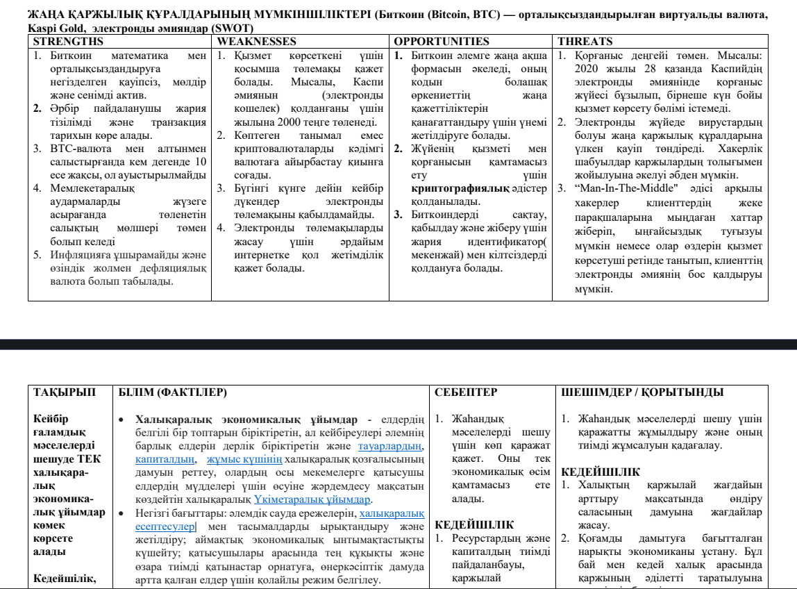 География пәнінен Назарбаев Зияткерлік мектептерінің сыртқы жиынтық бағалау жұмысында эссе жазуға арналған кестелер жинағы. Мектептің 2021 жылғы үздік түлектерімен құрастырылған. SWOT, PEST, PESTLE, +/- пен басқа да кестелердегі ақпарат жоғарғы сынып бағдарламасындағы жаһандық мәселелер бойынша барлық тақырыптарды қамтиды: жаһандану, терроризм, ядролық қару, демографиялық дағдарыс, экологиялық ластану, табиғи ресурстар, дамыған және дамушы елдер, Дүниежүзілік Банк пен Халықаралық Валюталық Қор, Дүниежүзілік Сауда Ұйымы, Дамуға Ресми Көмек Ұйымы, жаңа қаржылық құралдар, халықаралық интеграция.