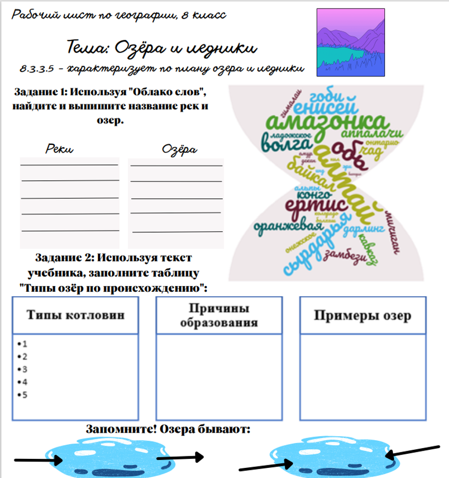 Рабочий лист к уроку географии
