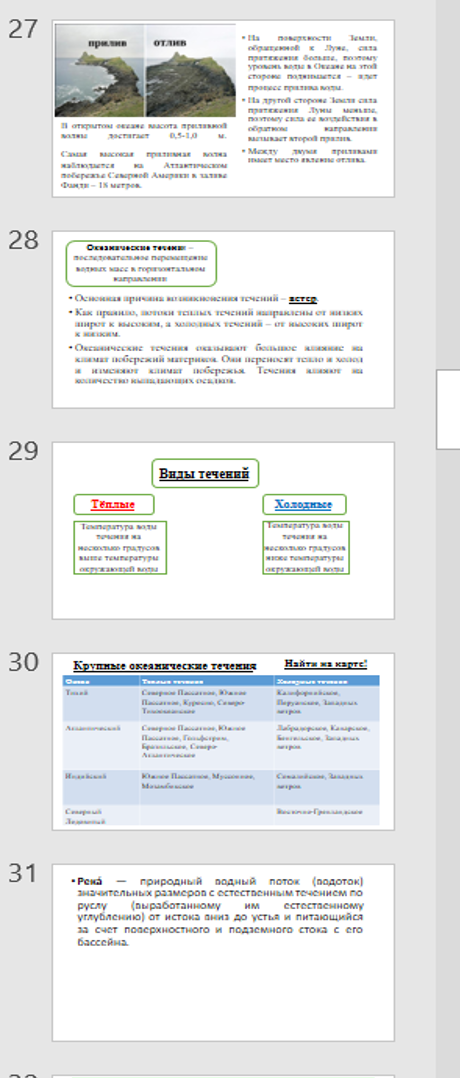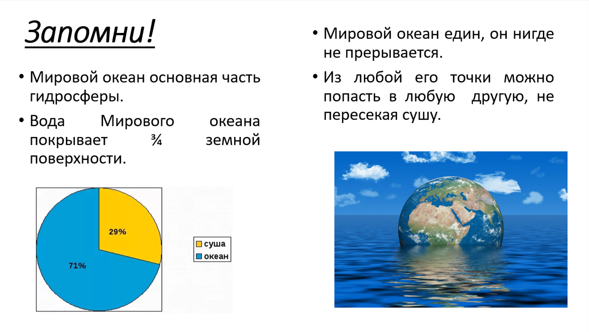 В данной презентации (75 слайдов) содержатся основные данные по разделу «Гидросфера». Помимо теоретического (лекционного) материала в презентации есть задания для закрепления: 20 заданий открытого типа, 15 тестовых заданий с выбором одного и 10 заданий с выбором нескольких ответов (тесты ЕНТ). В конце имеется глоссарий по разделу.