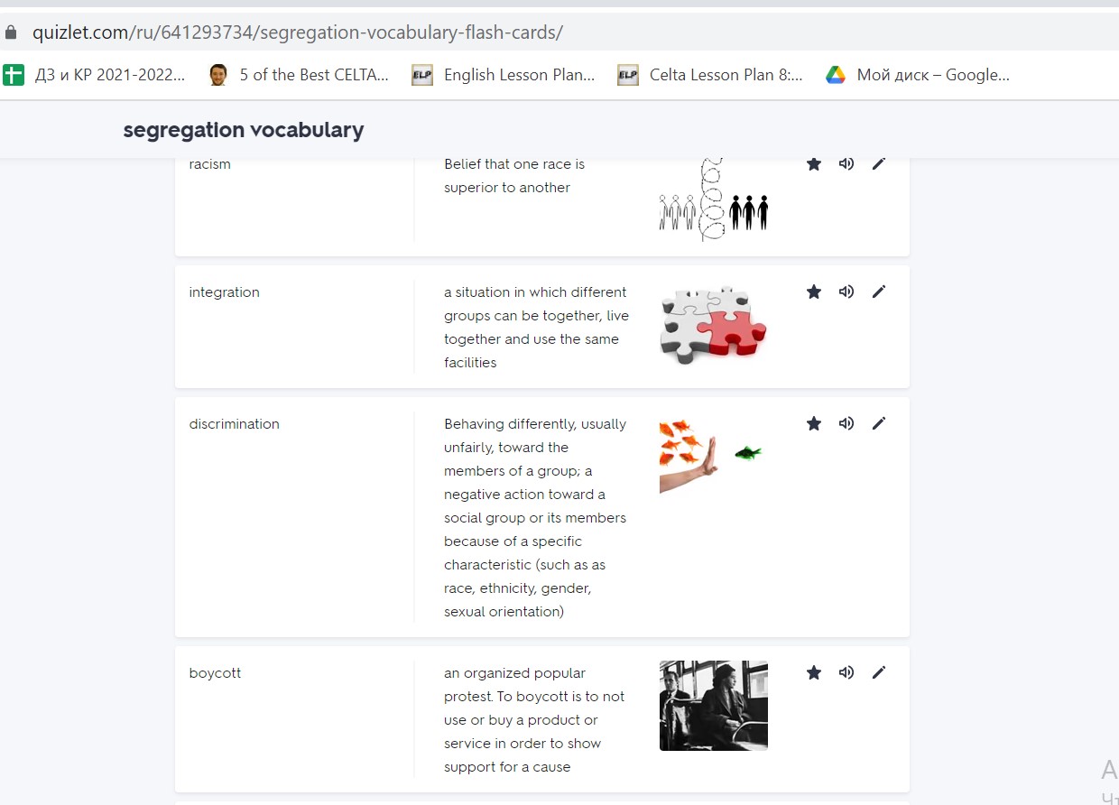 Цель - практика нового вокабуляра и говорения на тему Civil rights movement.
