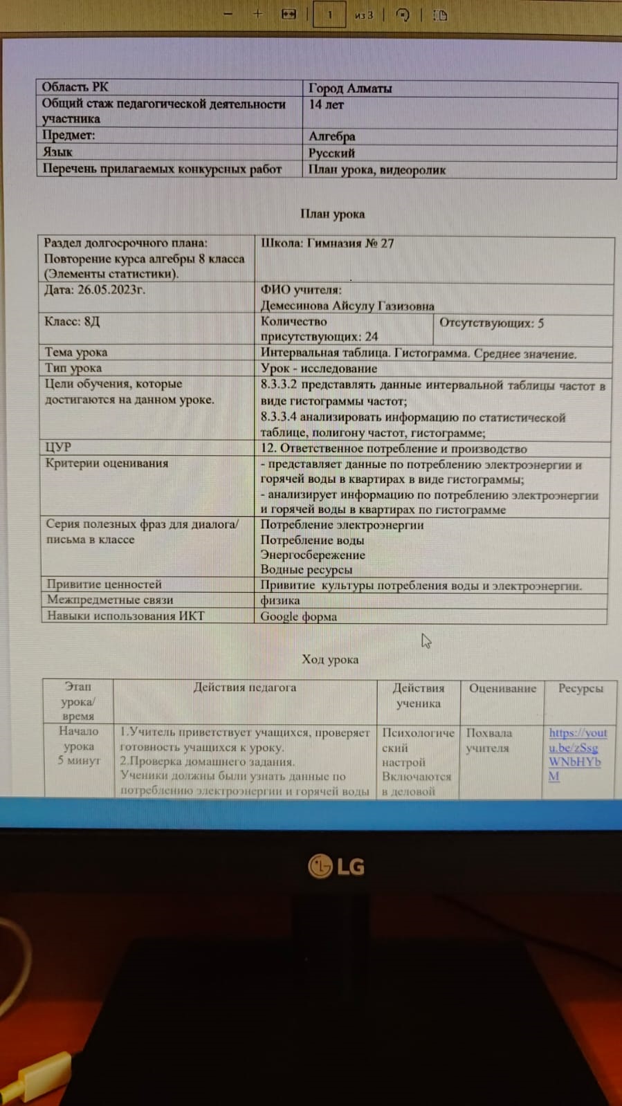 1,5 минутный файл содержит видеоматериал с саморефлексией автора урока
