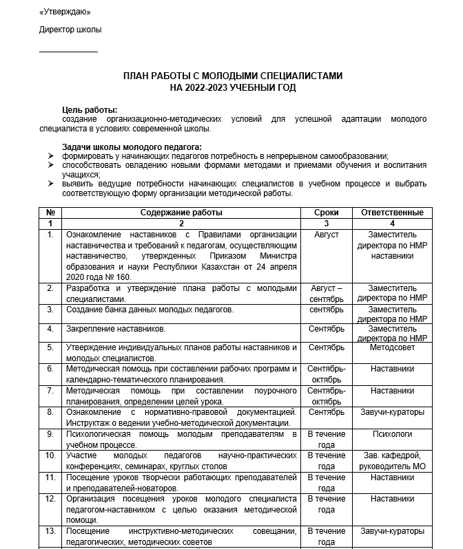 ПЛАН РАБОТЫ С МОЛОДЫМИ СПЕЦИАЛИСТАМИ НА 2022-2023 УЧЕБНЫЙ ГОД