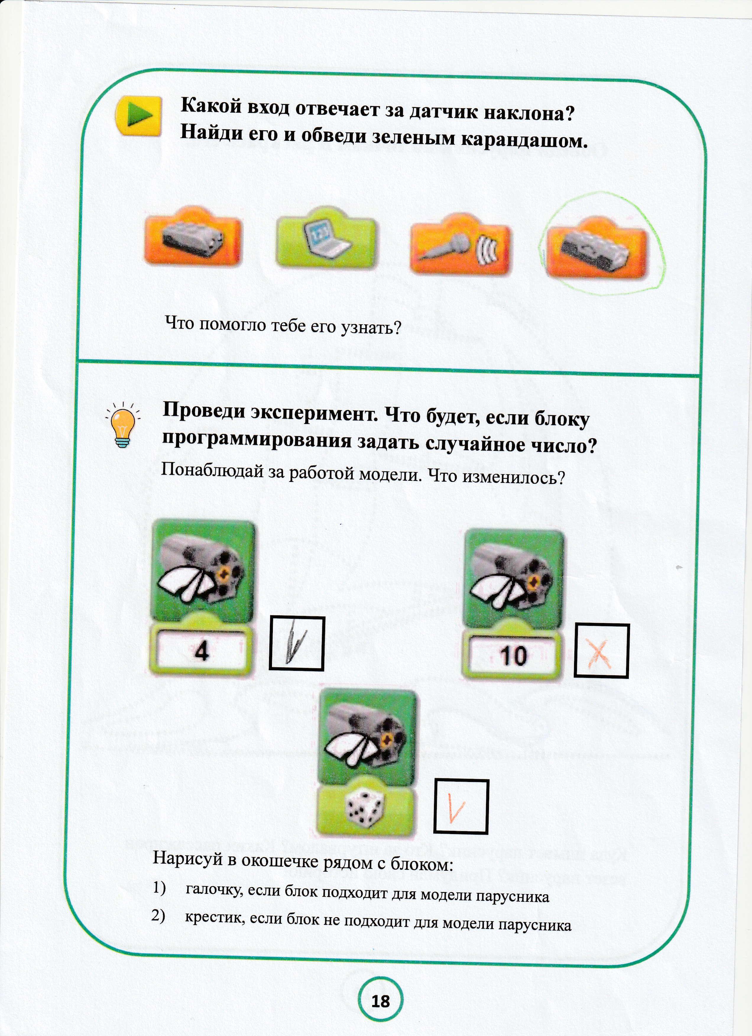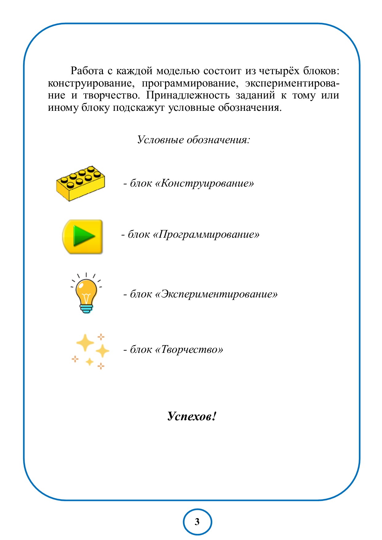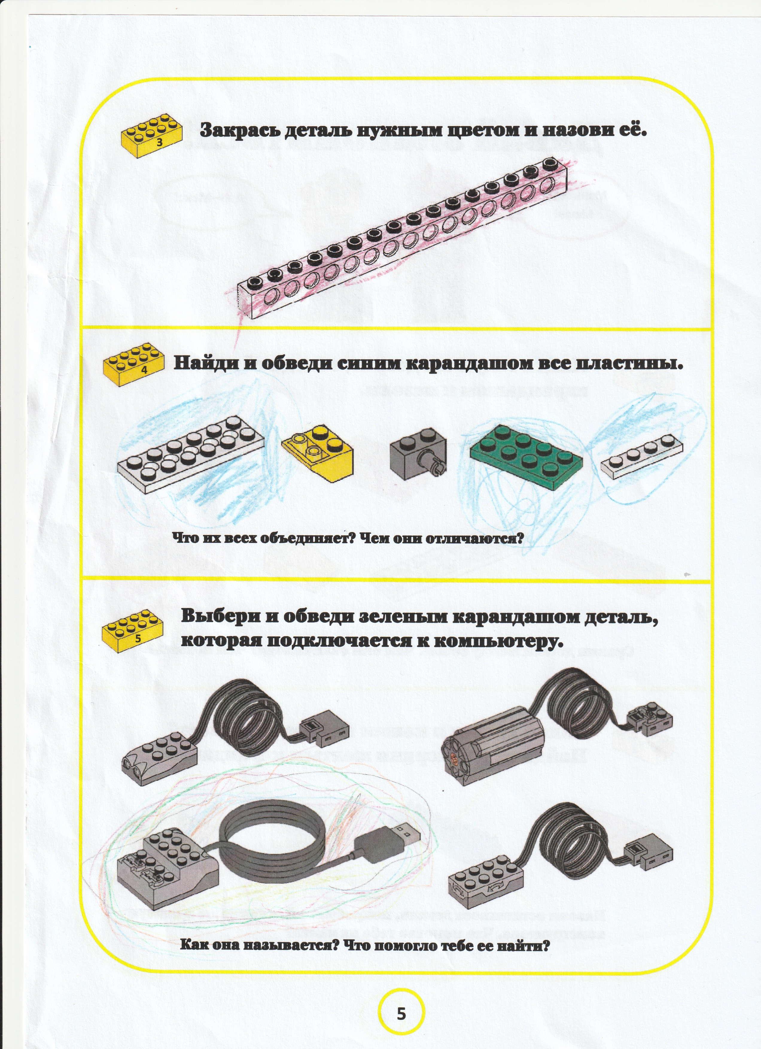 В комплекте также идет Рабочая тетрадь для детей. Она направлена на закрепление знаний, полученных в ходе занятий по робототехнике. Задания разработаны с учётом возрастных особенностей детей старшего дошкольного возраста. Разделы в тетради соответствуют этапам занятия: конструирование, программирование, экспериментирование и творчество. Принадлежность заданий к тому или иному блоку подскажут условные обозначения, которые даются в Предисловии. Использование рабочей тетради позволяет активизировать внимание детей, повысить интерес, актуализировать / закрепить знания и разнообразить занятия. В ходе выполнения упражнений дети выделяют конструкторские и программные особенности созданных моделей, наблюдают за работой механизмов, заложенных в подвижных конструкциях, проводят эксперименты и делают выводы. В гл. 4 Методического пособия сформулированы правила работы с тетрадью (отдельно для педагогов и детей).