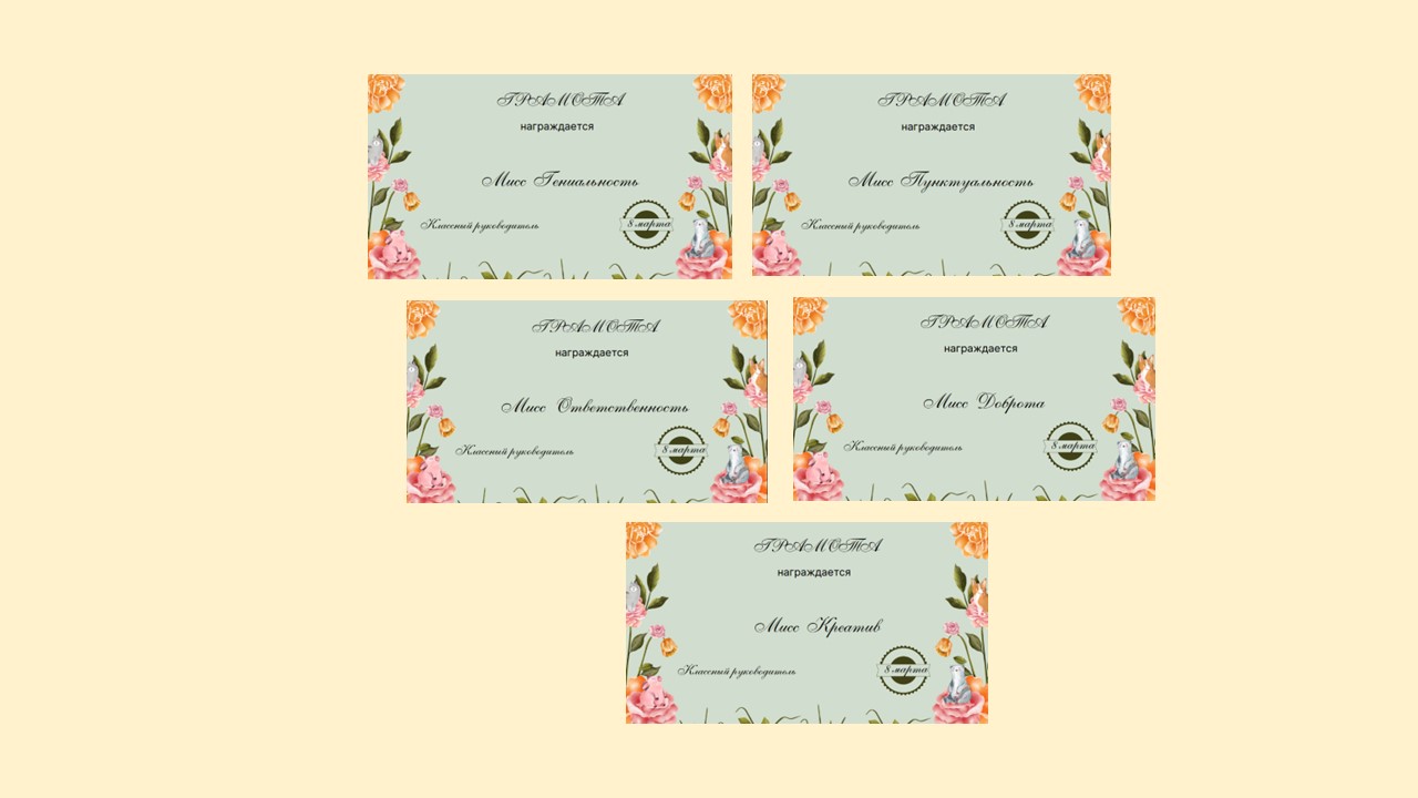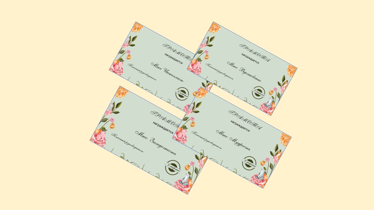 Грамоты для девочек на 8 марта. Всего 25 грамот разных номинаций. Отличная возможность отметить таланты, достоинства каждой девочки, что даст возможность повысить уверенность в себе, мотивацию.
