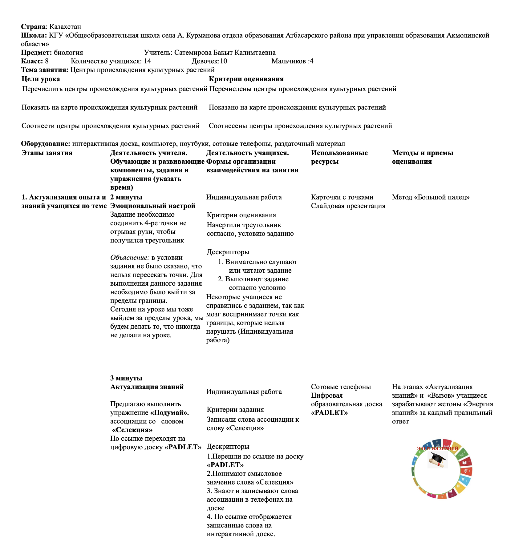 Сценарий занятия к предмету "Биология", 8 класс. Тема: "Центры происхождения культурных растений"