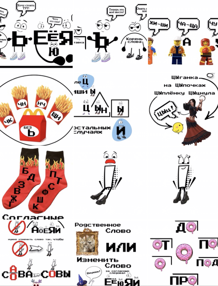 Наклейки/карточки по русскому языку