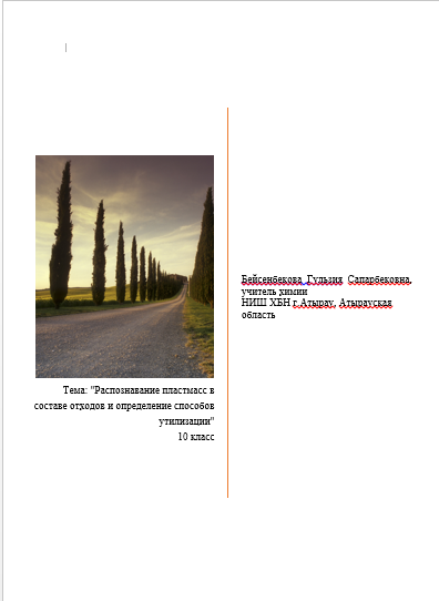 Тема: "Распознавание пластмасс в составе отходов и определение способов утилизации". В начале уроке проведено формативное оценивание по проверке предыдущих знаний на Google таблице (Excel формате).