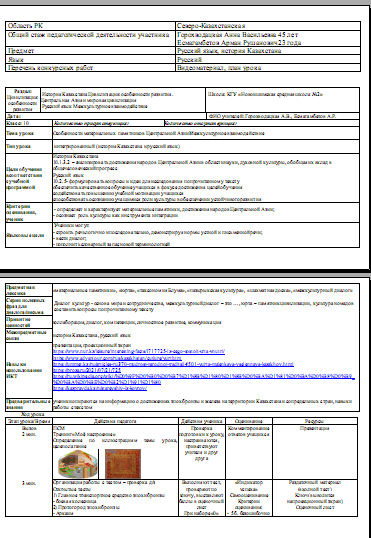 План урока по Истории Казахстана и русскому языку с интегрированными элементами ОУР