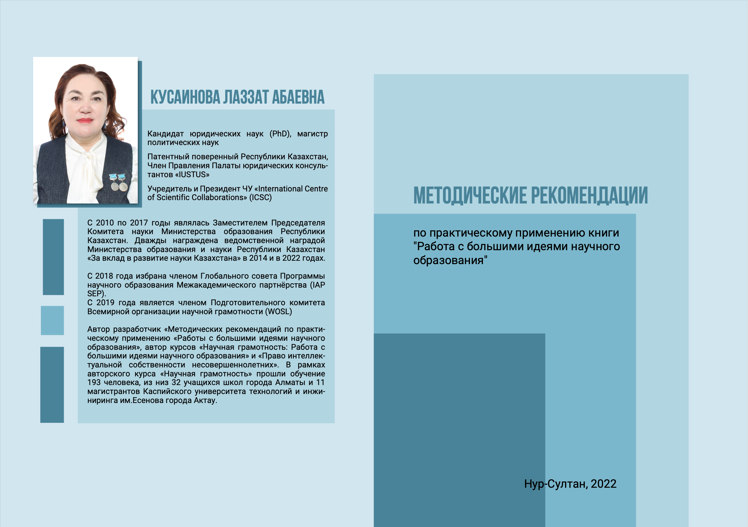 При поддержке Кластерного Бюро ЮНЕСКО в Казахстане, Кыргызстане, Таджикистане и Узбекистана (г.Алматы) и IAP – SEP были разработаны Методические рекомендации по практическому применению книги "Работа с Большими идеями научного образования» (Методические рекомендации).