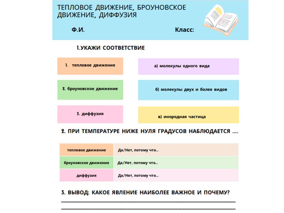 Тепловое движение, броуновское движение, диффузия 8 класс