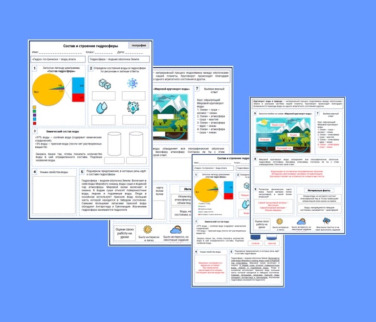 - Определи состояния воды в гидросфере по рисункам и запиши ответы.