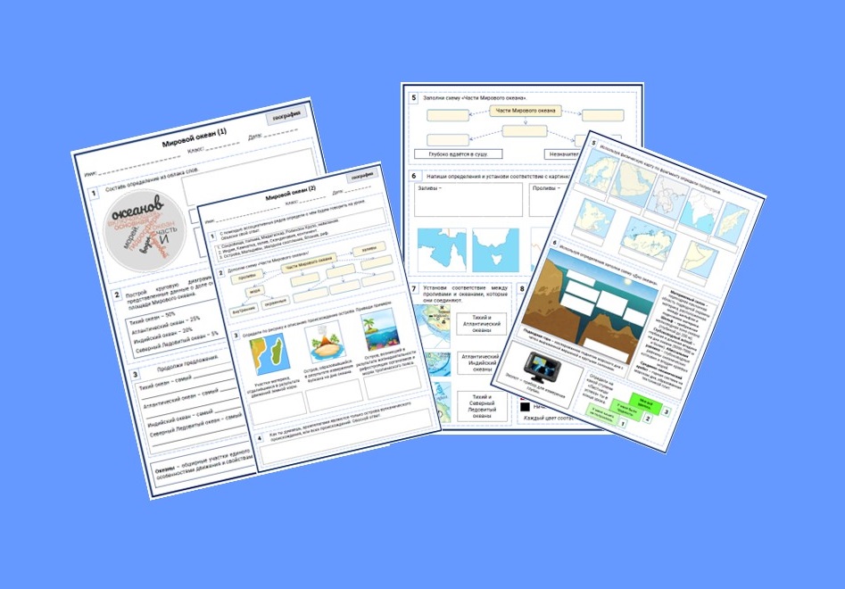 Рабочие листы по географии "Мировой океан (1) и Мировой океан (2)".