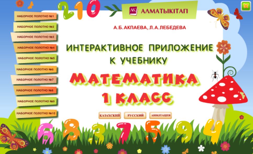 Выбрав одно из 10 полотен, перенесите нужные элементы мышкой, если нужно очистить доску и убрать надписи, то нажмите кнопку "чистая доска" и "вернуть названия", для казахского языка соответственно "ӨШІРУ" и "АТАУЫН ҚАЙТАРУ".