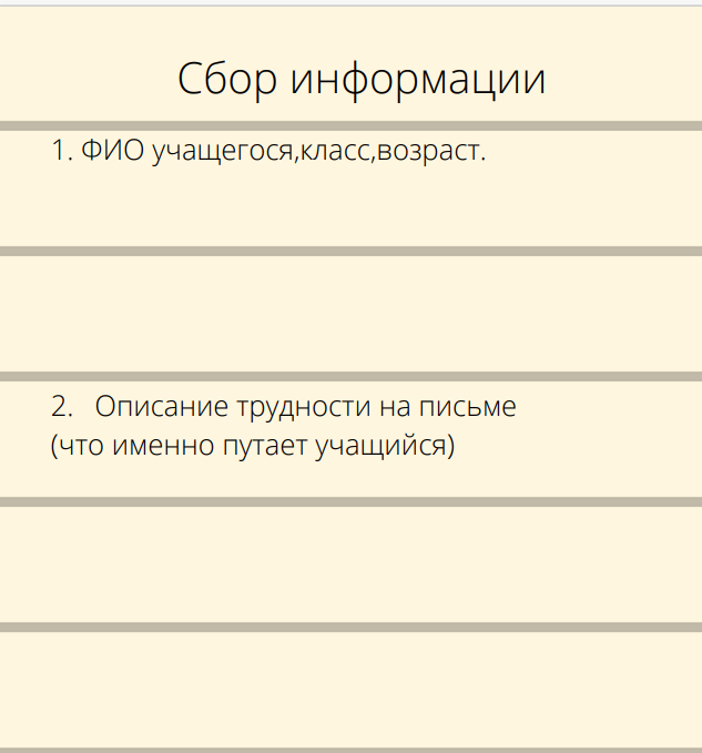 Когда учитель английского языка обнаруживает дисграфию у ученика, то первым шагом является сбор информации от разных специалистов. Данная тетрадь представляет собой анкету по облегчению поиска информации для учителя.Внутри 5 пунктов на 3 страницах начиная от описание трудностей на письме заканчивая информацией от службы сопровождения.