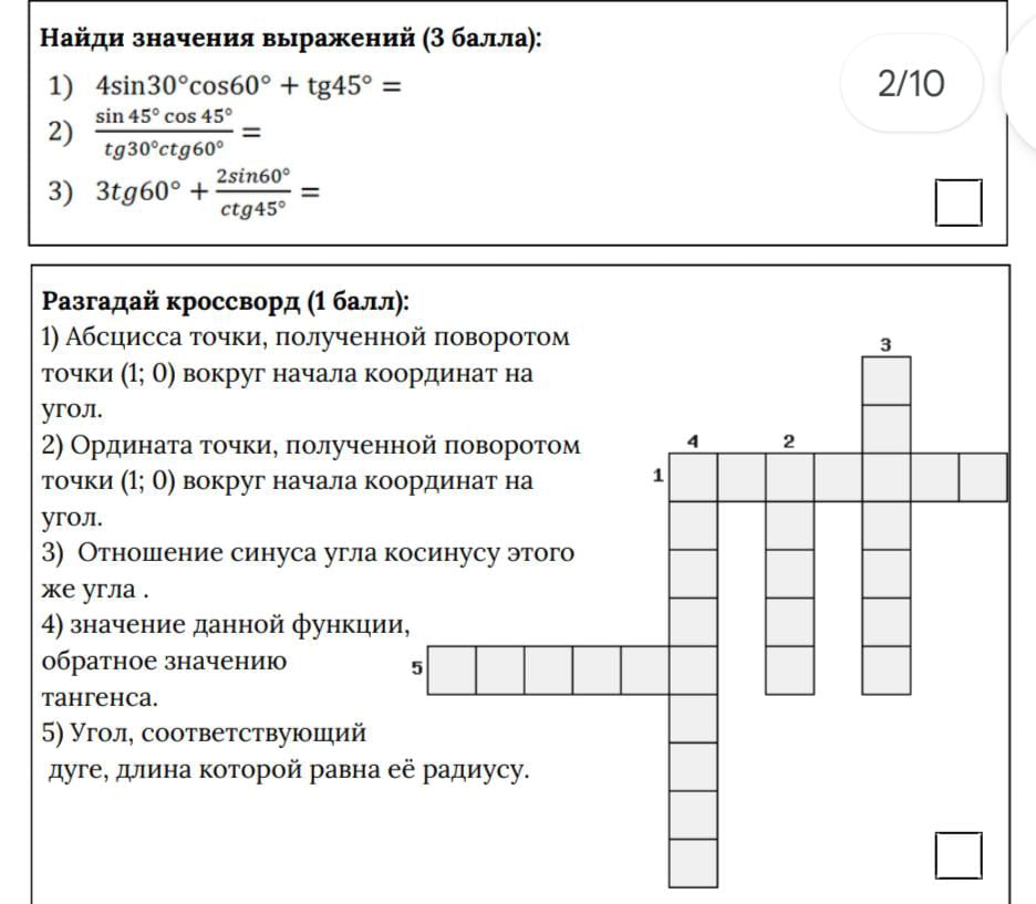 Набор рабочих листов по теме "Синус, косинус, тангенс и котангенс произвольного угла" алгебра 9 класс Лизунова М.Н.