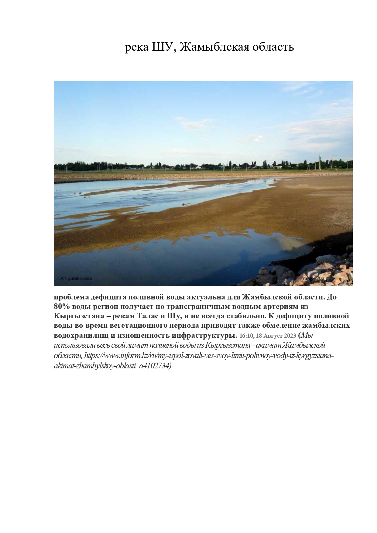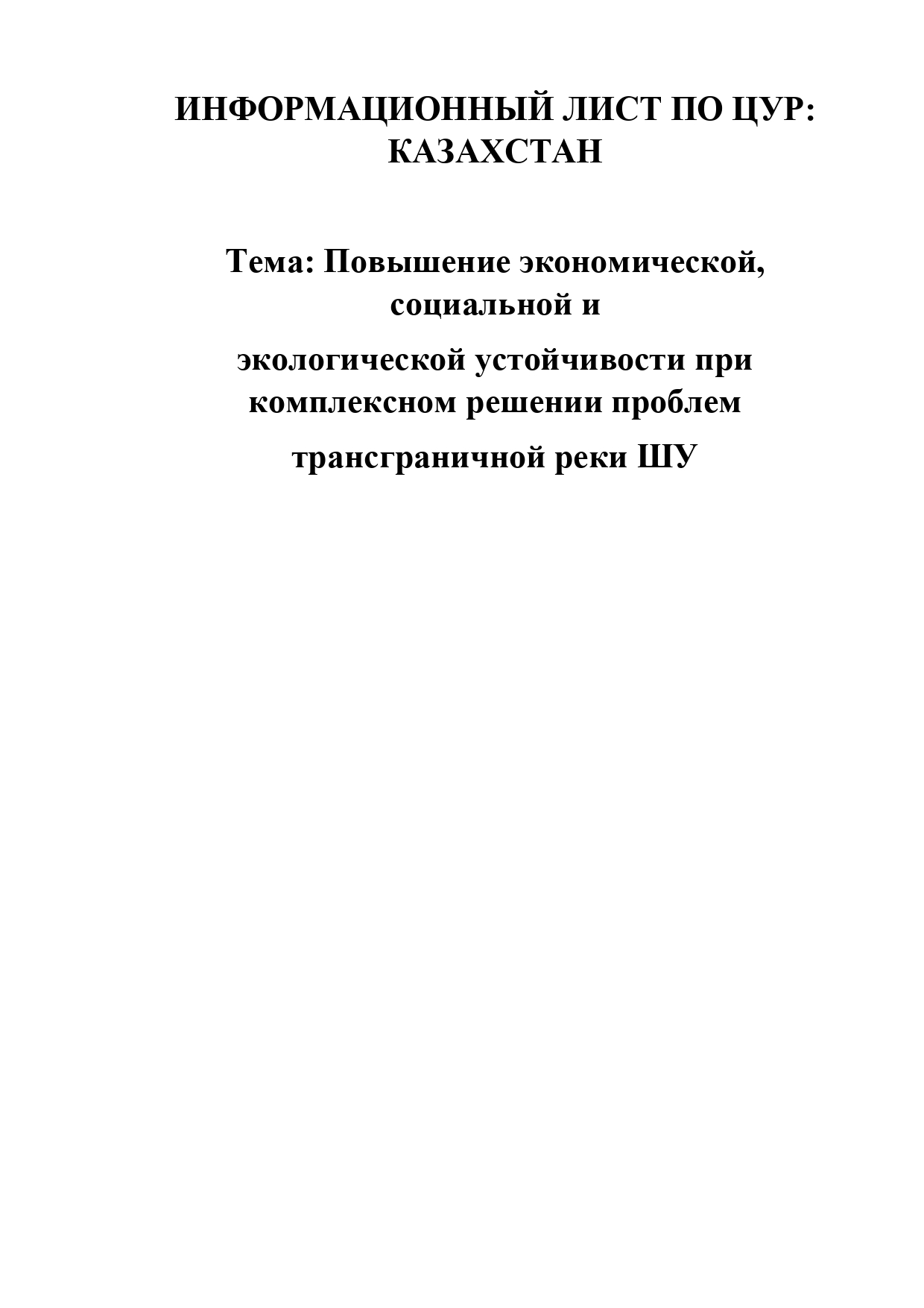 Повышение экономической, социальной и экологической устойчивости при комплексном решении проблем трансграничной реки ШУ