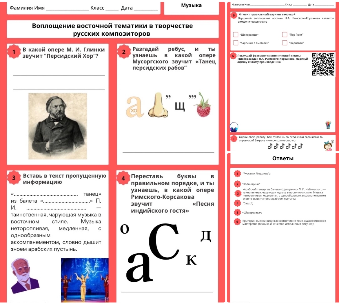 Рабочие листы по музыке «Воплощение восточной тематики в творчестве русских композиторов» для 8 класса