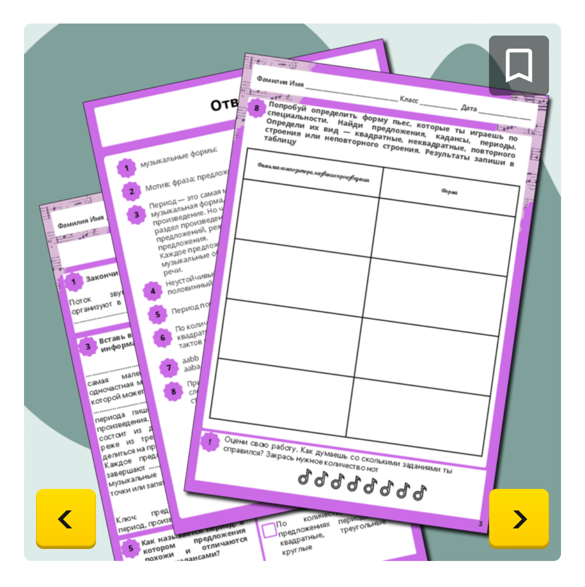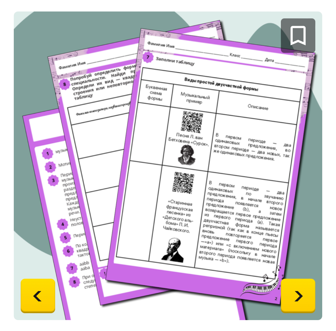 Рабочие листы по муз. литературе/слушанию музыки «Простые формы. Форма периода, простая двухчастная»