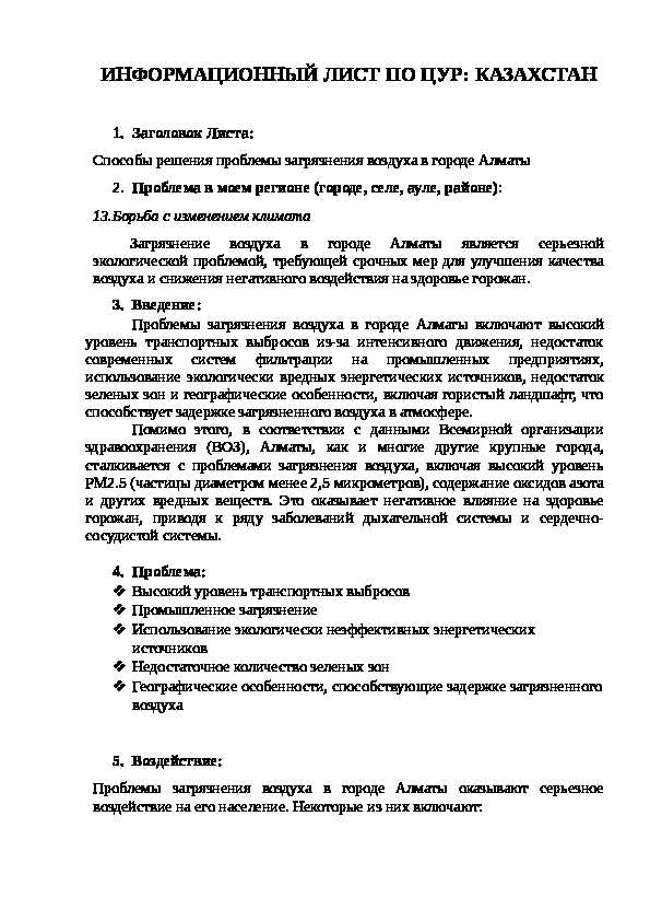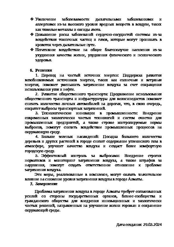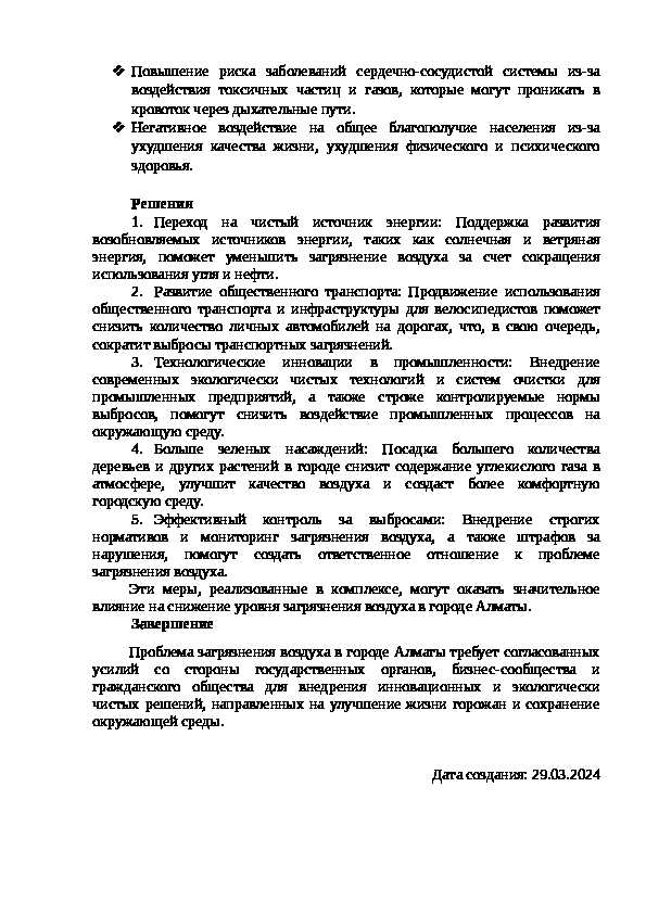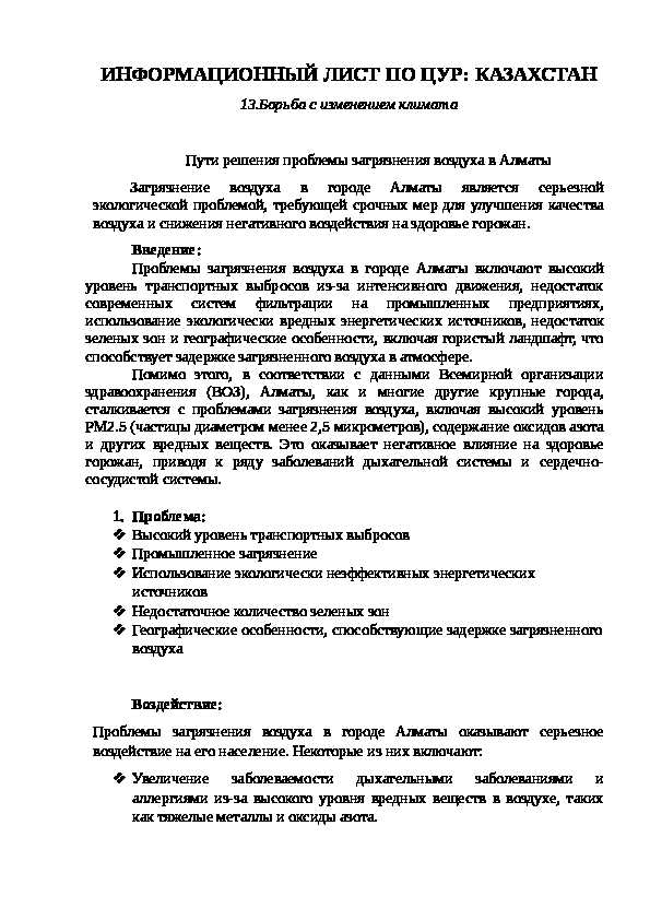 Загрязнение воздуха в городе Алматы является серьезной экологической проблемой, требующей срочных мер для улучшения качества воздуха и снижения негативного воздействия на здоровье горожан.