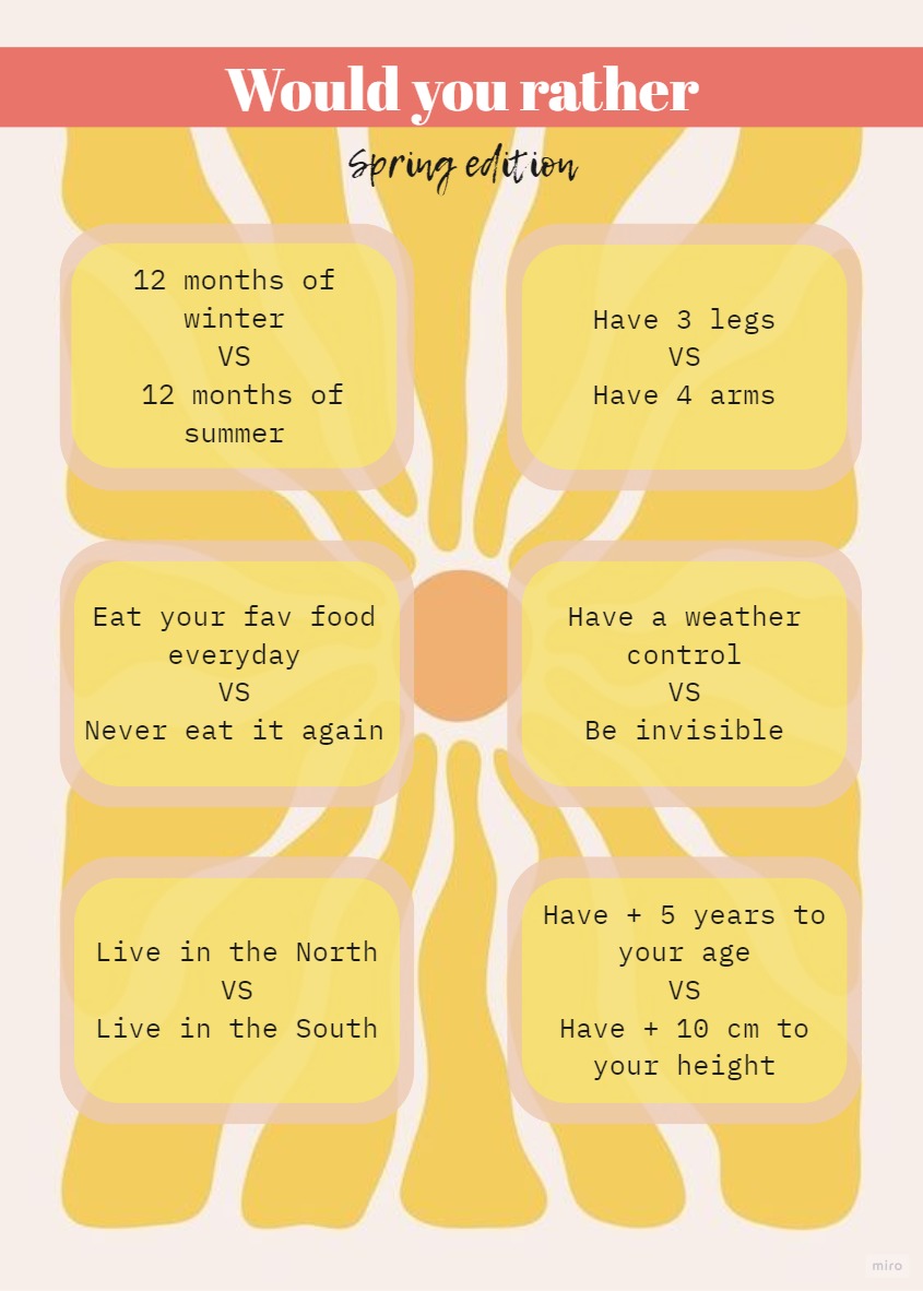Warming-up Spring 2024 WOULD YOU RATHER