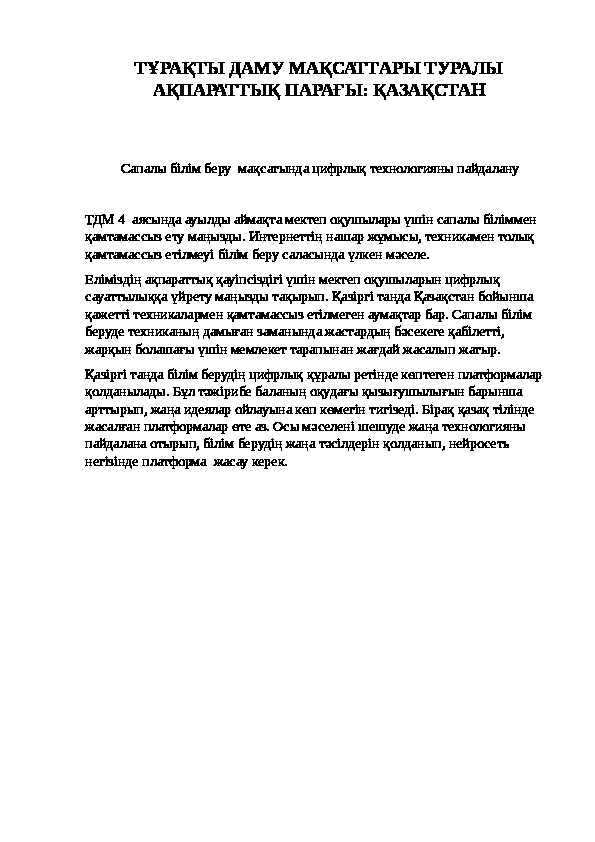 Сапалы білім беру мақсатында қолданылатын цифрлық технологияны пайдалану