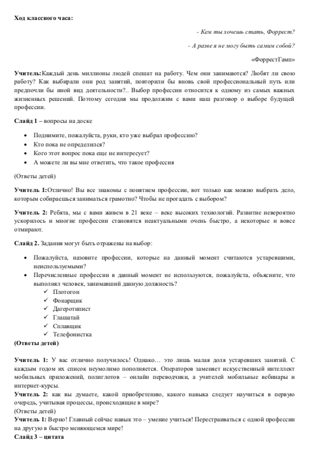 Классный час "Выбор Профессии"