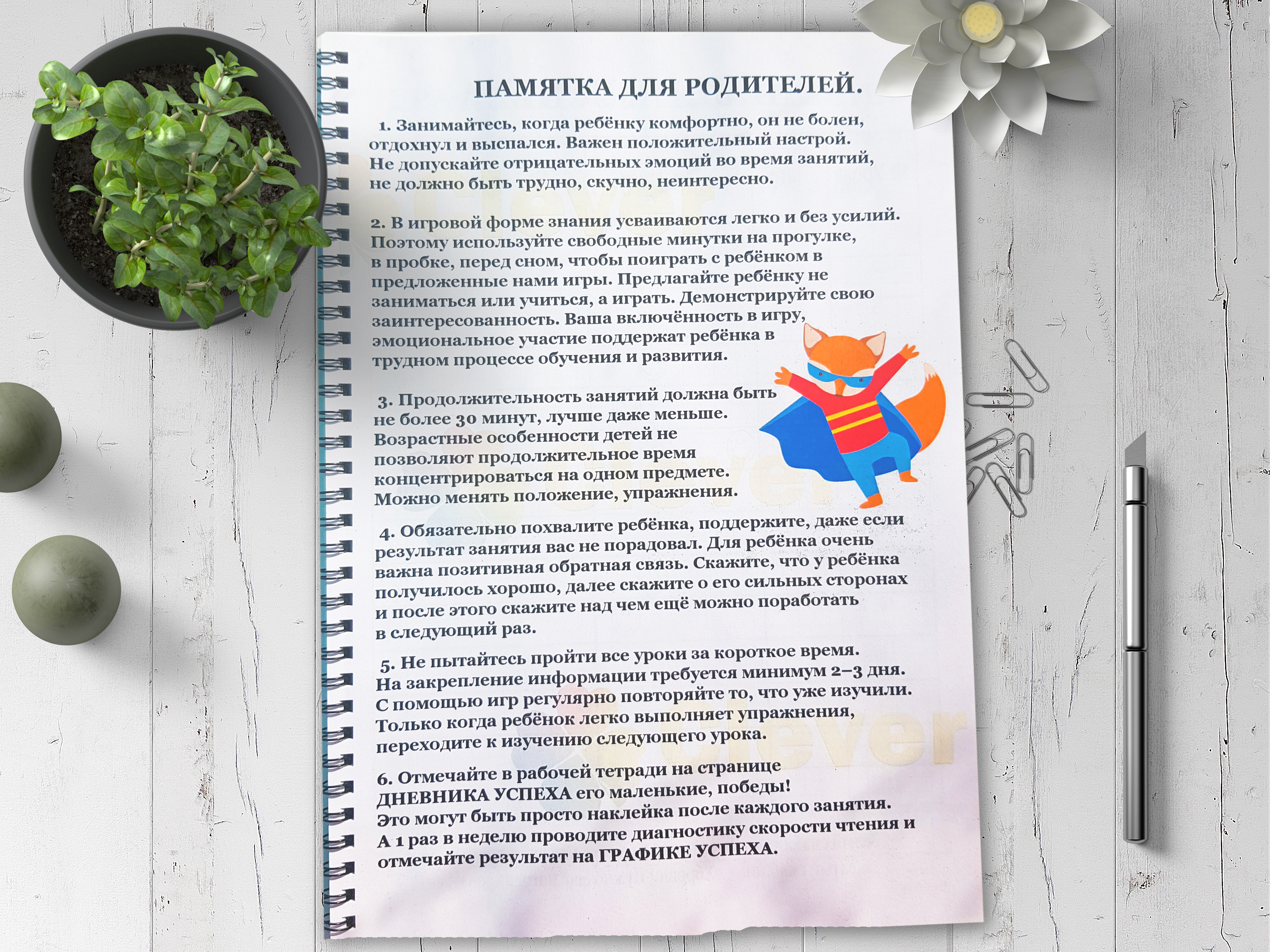 В пособии собраны самые результативные упражнения и методы, развивающие скорость и эффективность чтения, понимания и запоминания у ребёнка. Каждый урок уже продуман за вас! 86 страниц, 14 готовых уроков на 2 месяца занятий с ребёнком!
