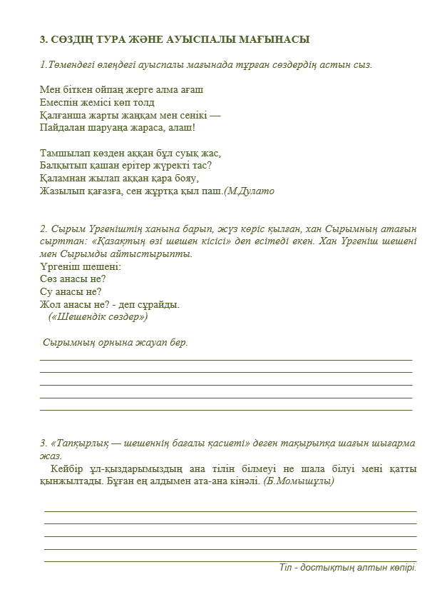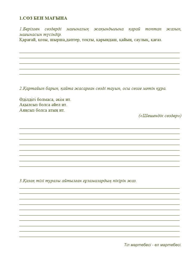 Қазақ тілінен дарынды оқушыларға арналған тапсырмалар жинағы