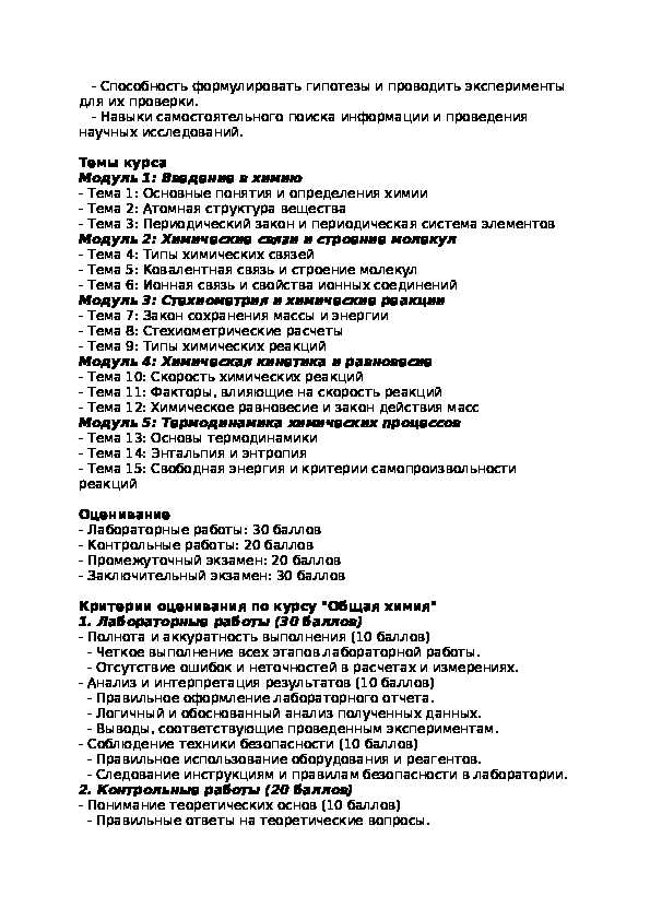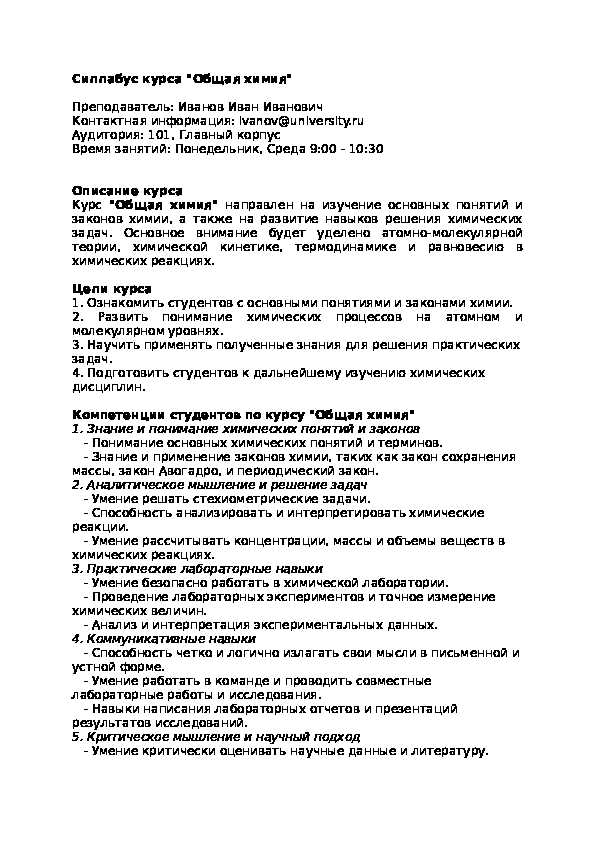 Силлабус по Общей химии