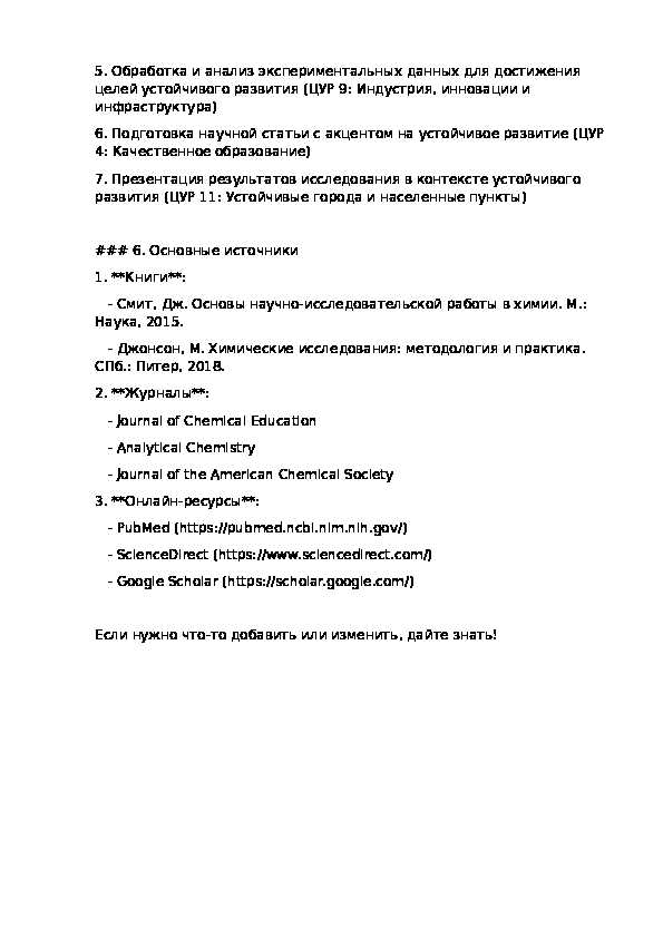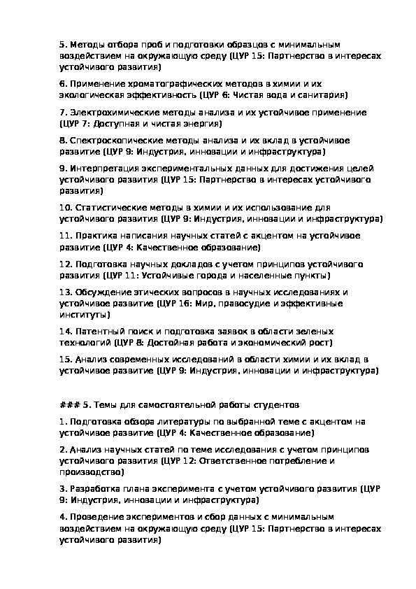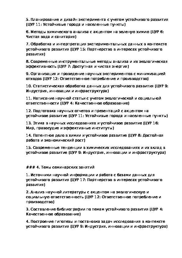Это документ как силлабуса по предмету "Основы научно-исследовательских работ по химии" интегрировать с целями устойчивого развития.