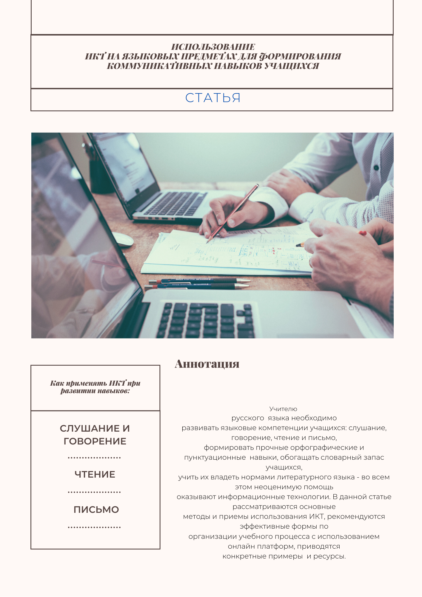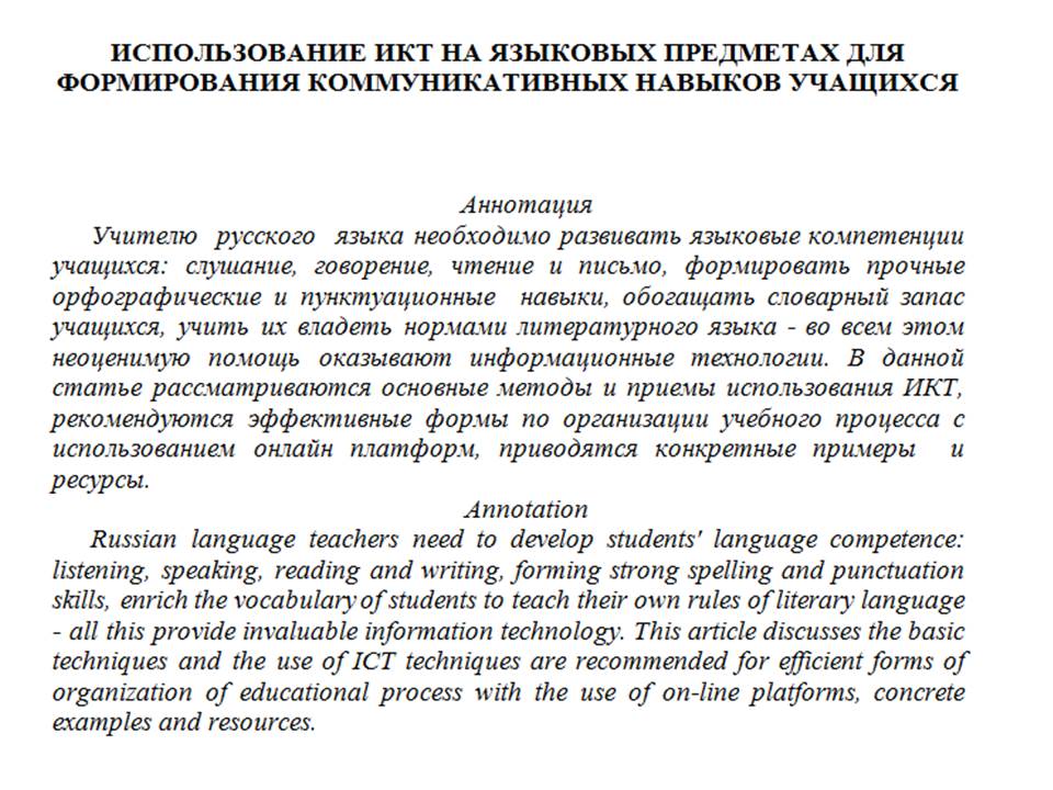 Статья. ИСПОЛЬЗОВАНИЕ ИКТ НА ЯЗЫКОВЫХ ПРЕДМЕТАХ ДЛЯ ФОРМИРОВАНИЯ КОММУНИКАТИВНЫХ НАВЫКОВ УЧАЩИХСЯ.